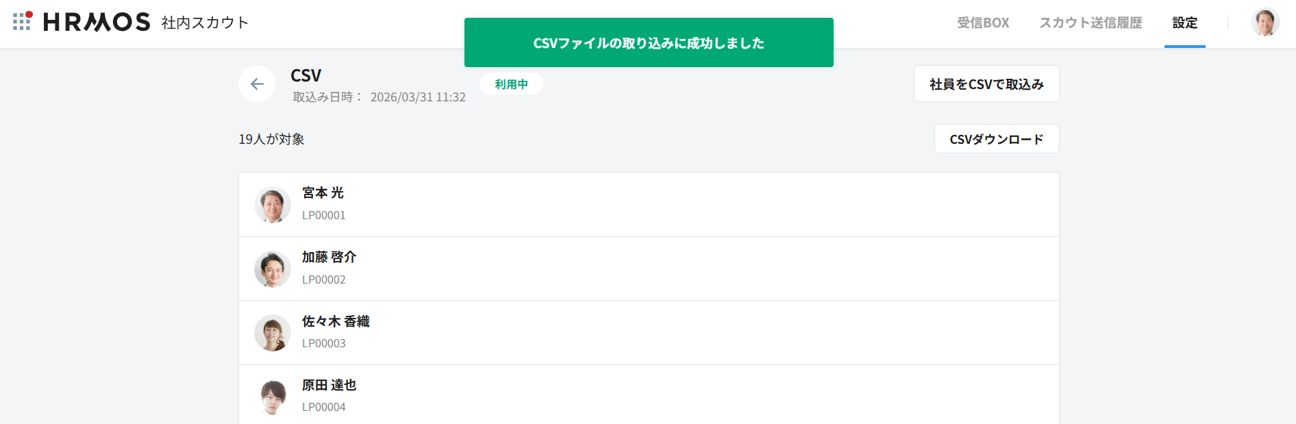 L スカウトを受信できる社員の登録方法(CSV登録)