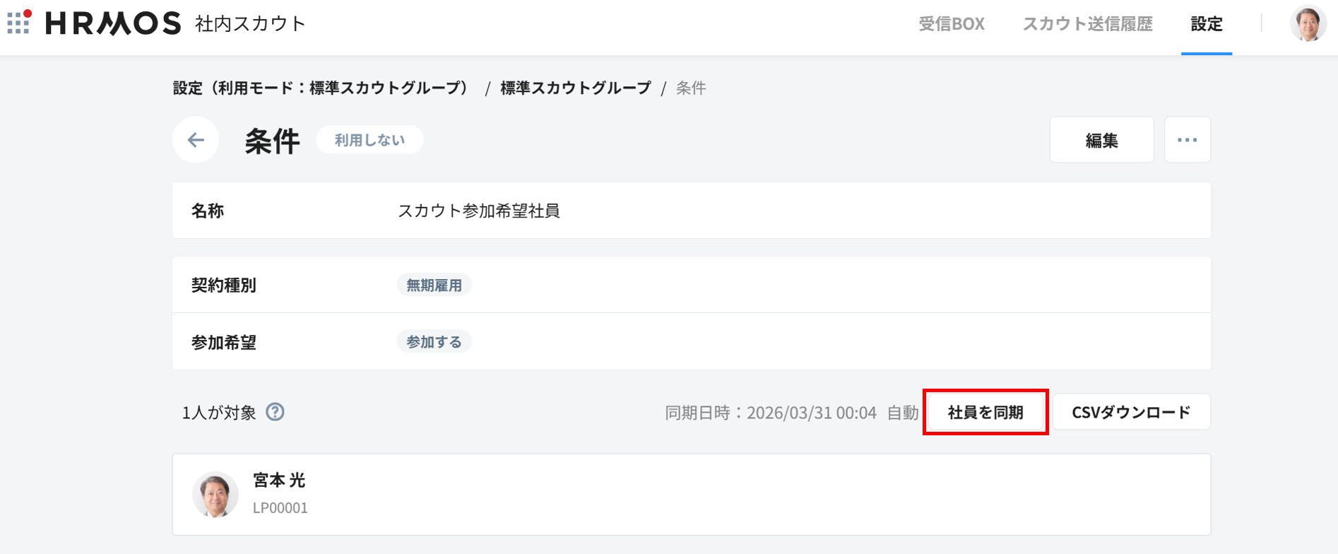 「スカウト受信可能社員」を設定できるのは、「管理者」または「スカウト利用設定の権限を持つユーザー」です。
