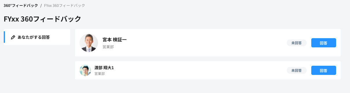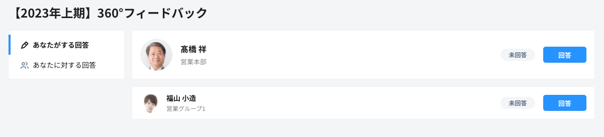 - 360°フィードバックの対象者に対して、回答者の表示を非表示にする。