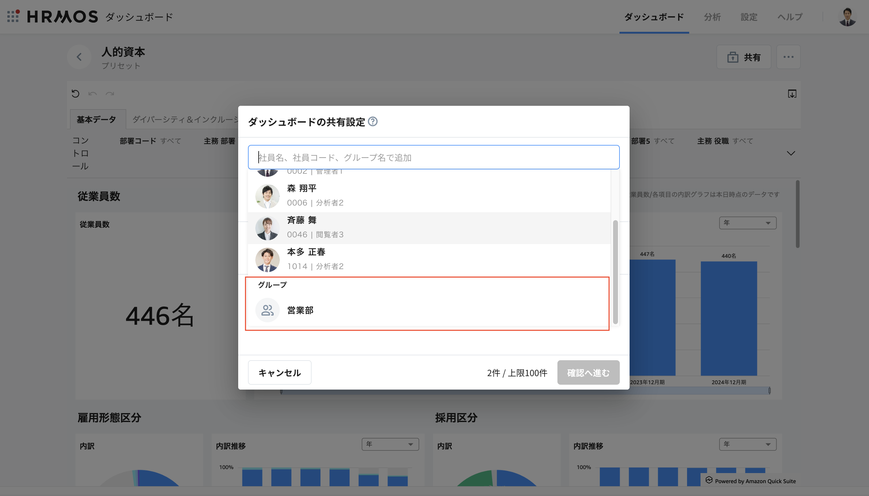ユーザーグループを作成し、分析やダッシュボードを共有する