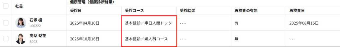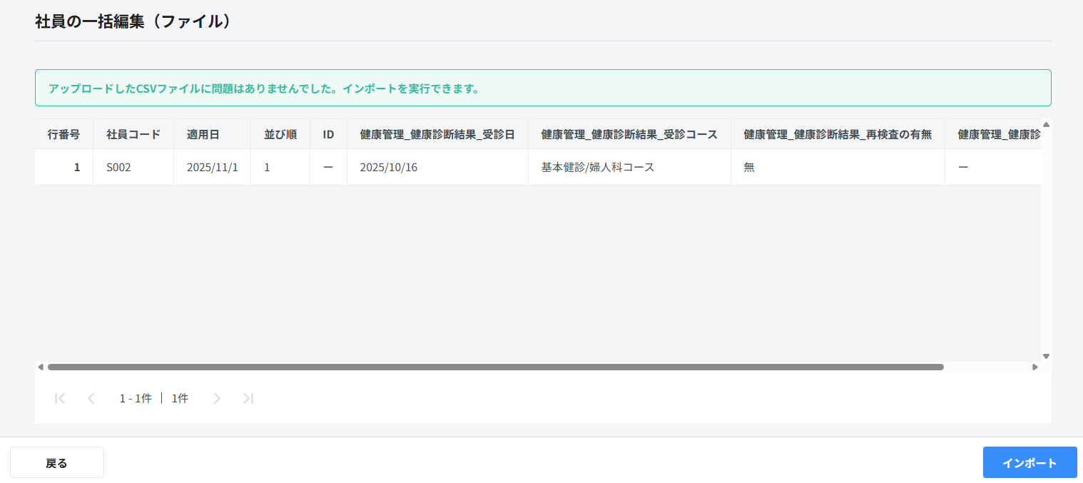 <インポート後の社員詳細画面上での見え方>