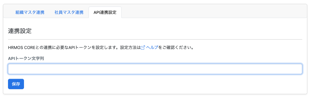 6.HRMOS社内研修 > システム > HRMOS CORE連携 > API連携設定 画面で、APIトークン文字列を貼り付けます。