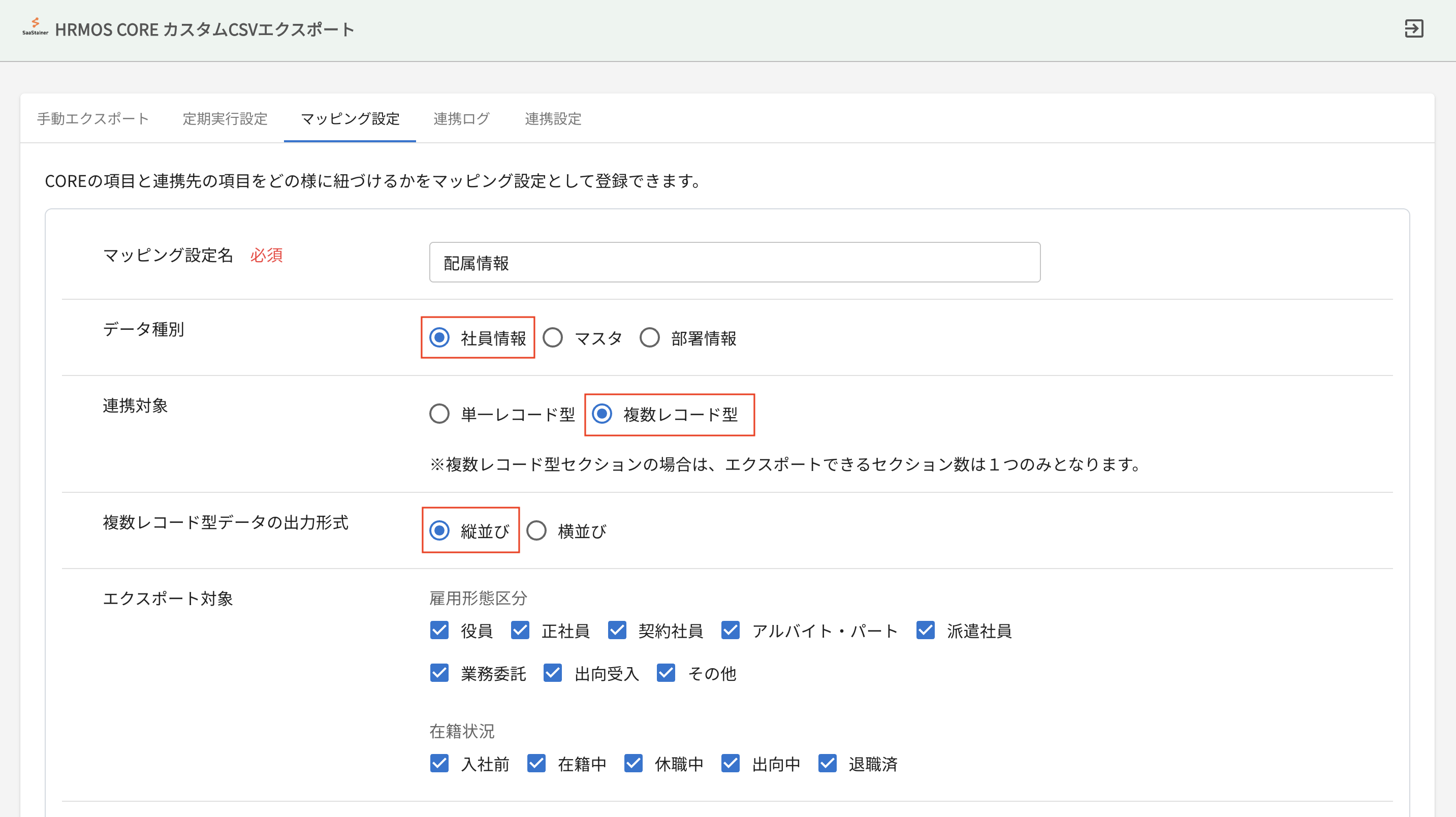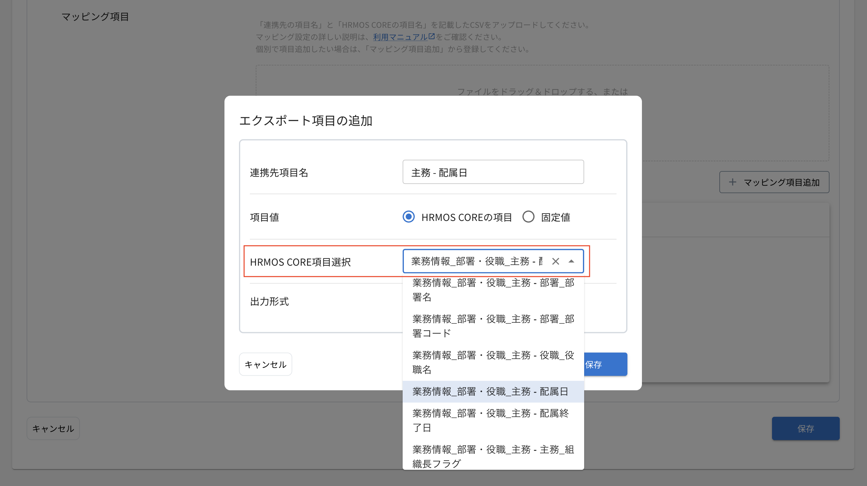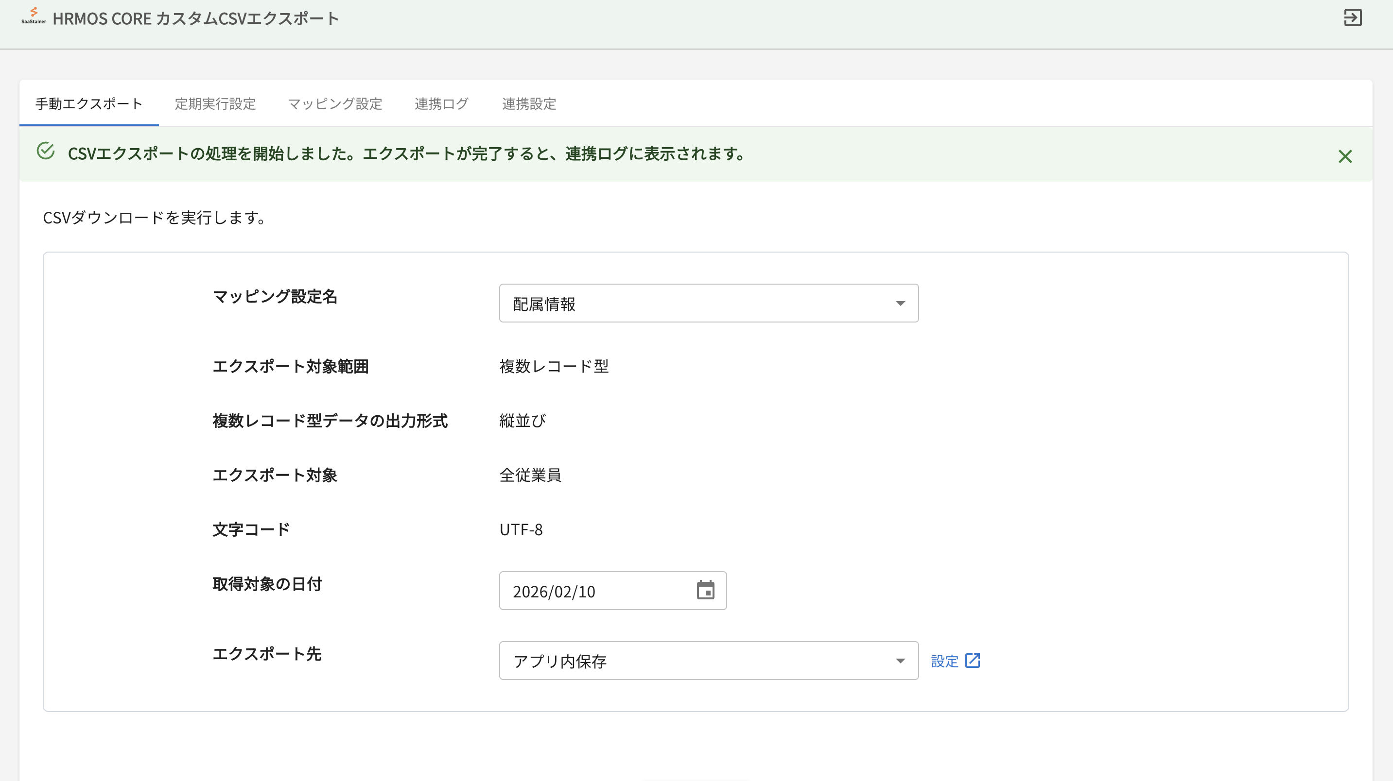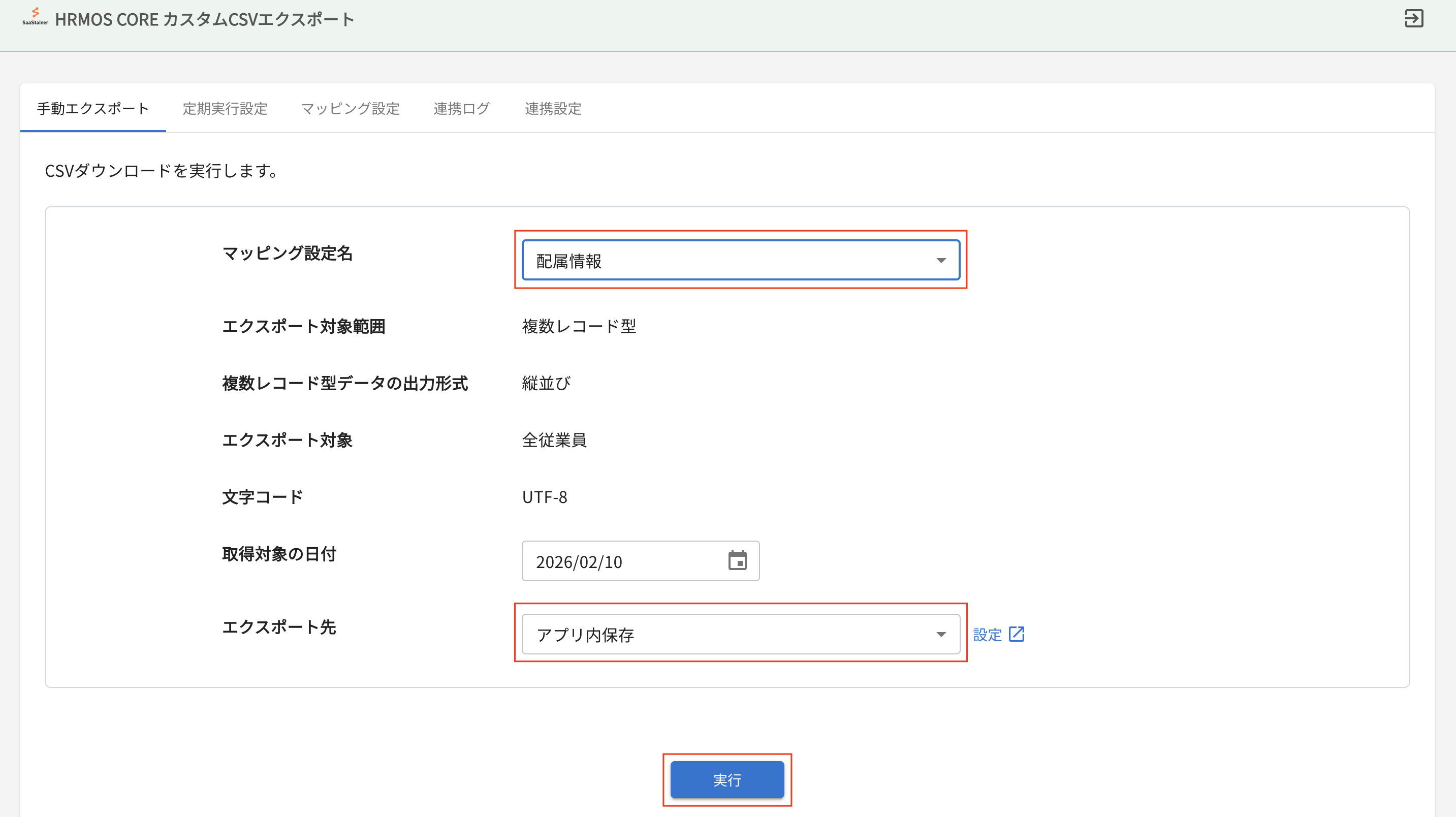 「HRMOS CORE カスタムCSVエクスポート」で配属情報をエクスポートする