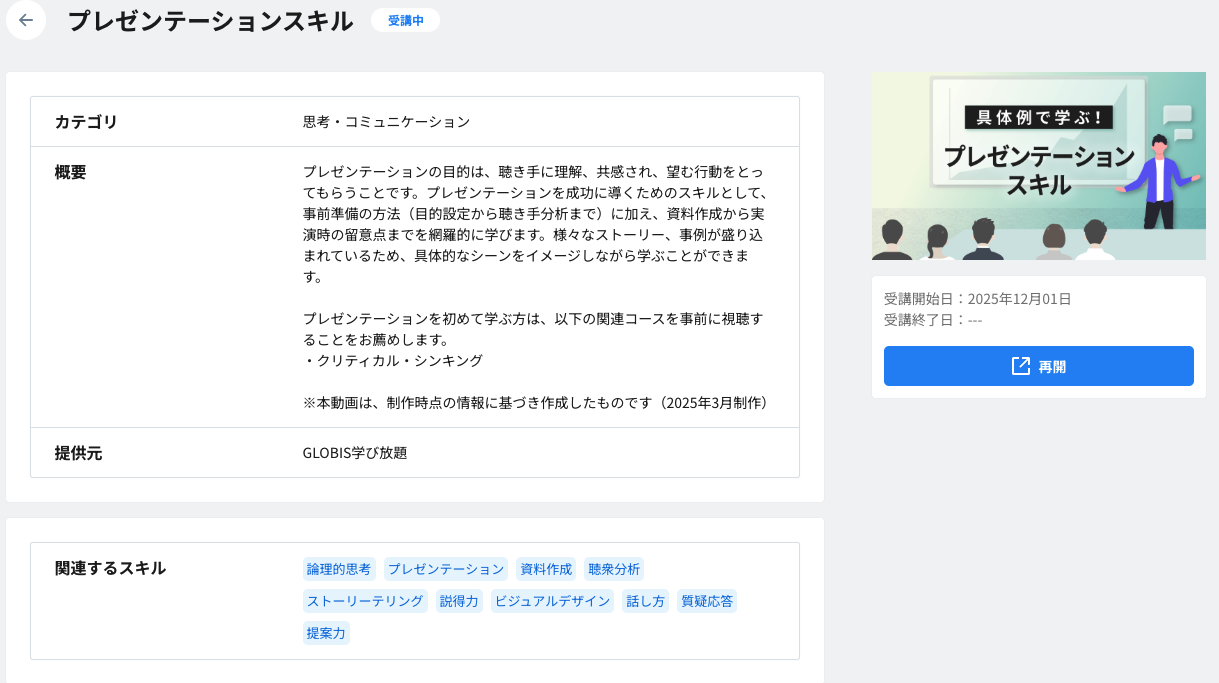 該当の学習コースをクリックすることで、学習コースの詳細を確認できます。