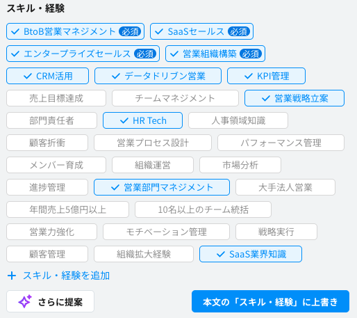 ポジションのスキル・経験に必須タグを付与する