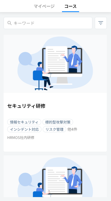 PCを持たない社員でも、スマートフォンアプリにてHRMOSラーニングを操作することができる。