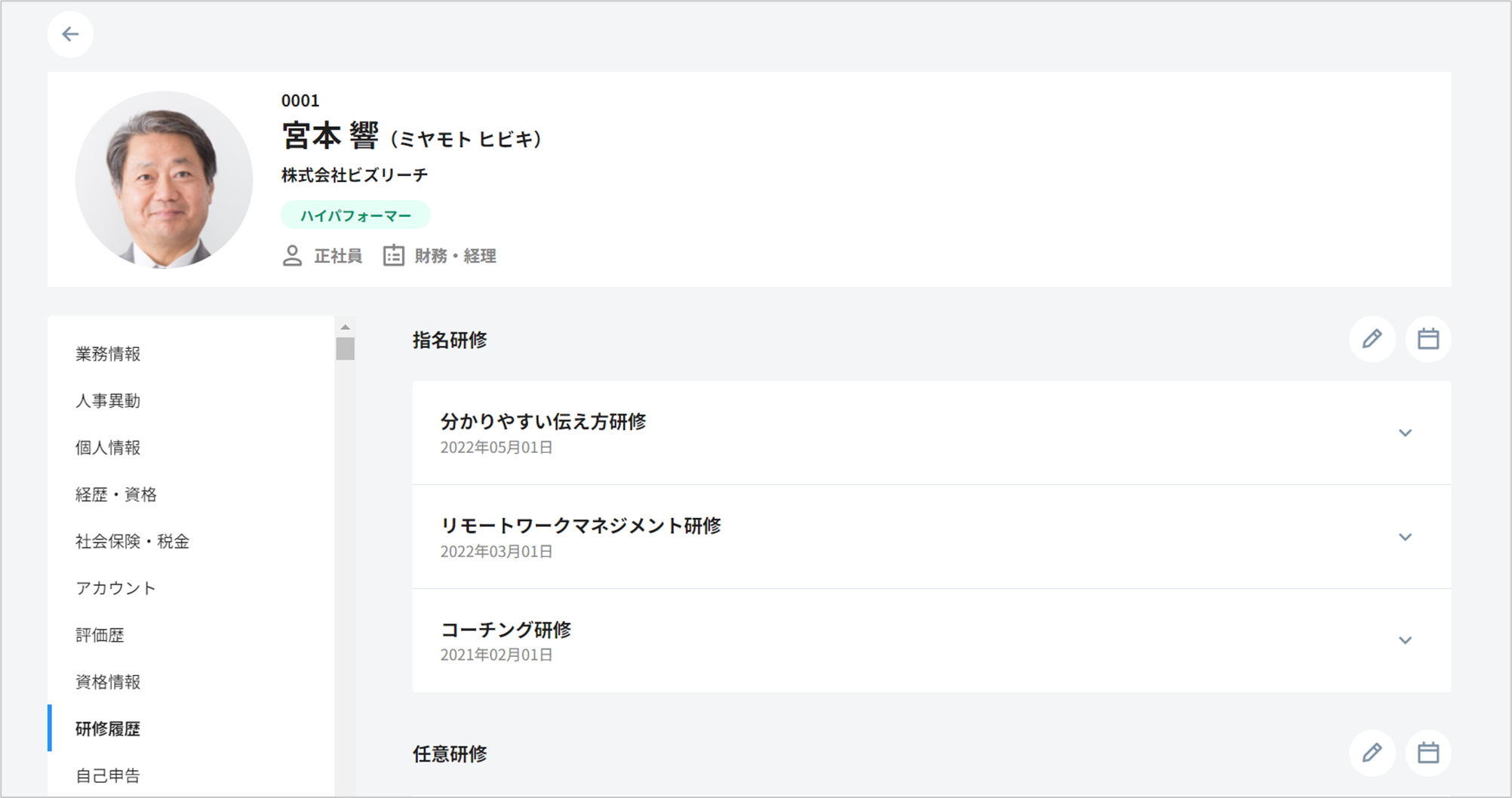 研修受講履歴は育成計画や研修の効果検証などに活用できます。